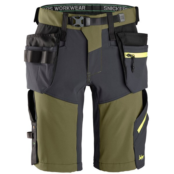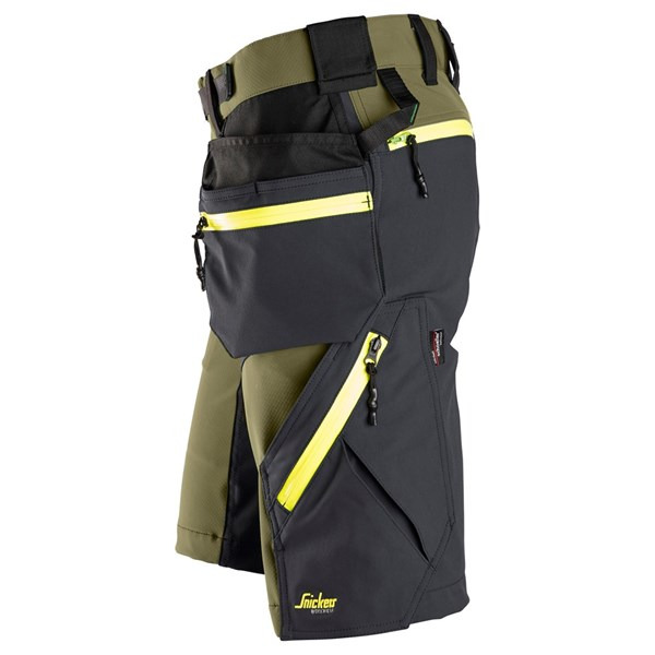 6140 Krótkie spodnie Snickers model Soft Shell Stretch FlexiWork+ w kolorze Khaki Green