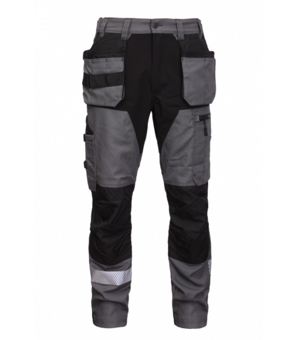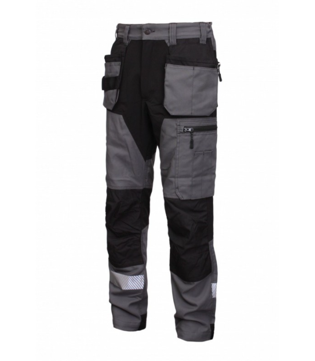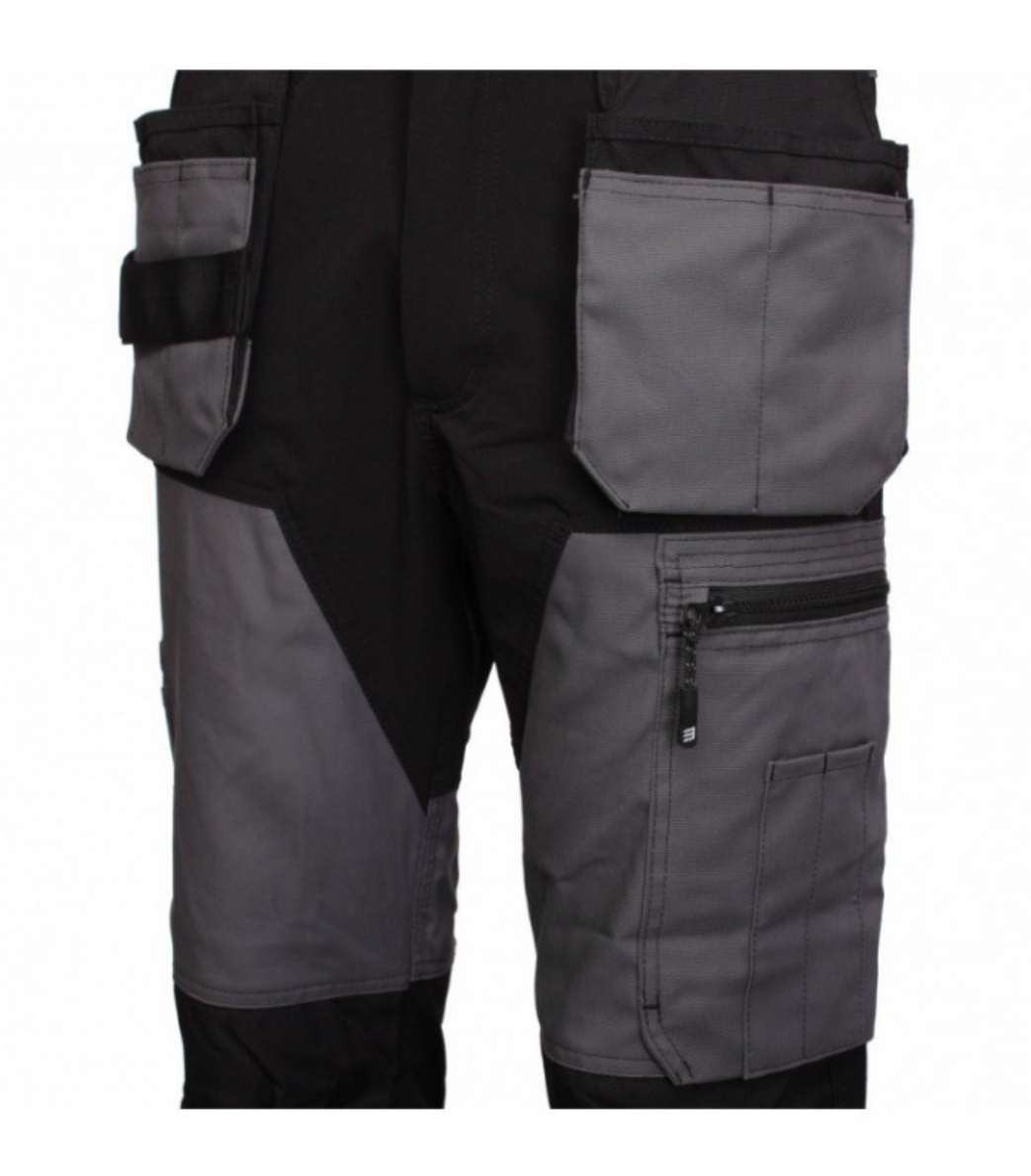 Bardzo wygodne, stylowe i trwałe spodnie MASHUP PLUS, które zapewniają swobodę i komfort. Spodnie wykonane są z bardzo oddychającej tkaniny Canvas, co pozwala czuć się komfortowo dzięki swobodnej cyrkulacji powietrza. W przodzie spodni znajdują się dwie przestronne kieszenie, zamykane na zamek w tylnej części spodni. Dodatkowo, z przodu spodni znajdują się duże kieszenie na narzędzia, które pozwalają na przenoszenie wszystkich najważniejszych narzędzi. Na lewej stronie spodni znajduje się kieszeń z zamkiem błyskawicznym, a na prawej kieszeń na narzędzia. Spodnie posiadają wbudowane elastyczne wstawki wykonane z materiało 4-WAY STRETCH, co pozwala na elastyczność podczas ruchu. Kieszenie na kolanach oraz zakończenia nogawek wzmocnione materiałem typu Cordura co przedłuża żywotność spodni.