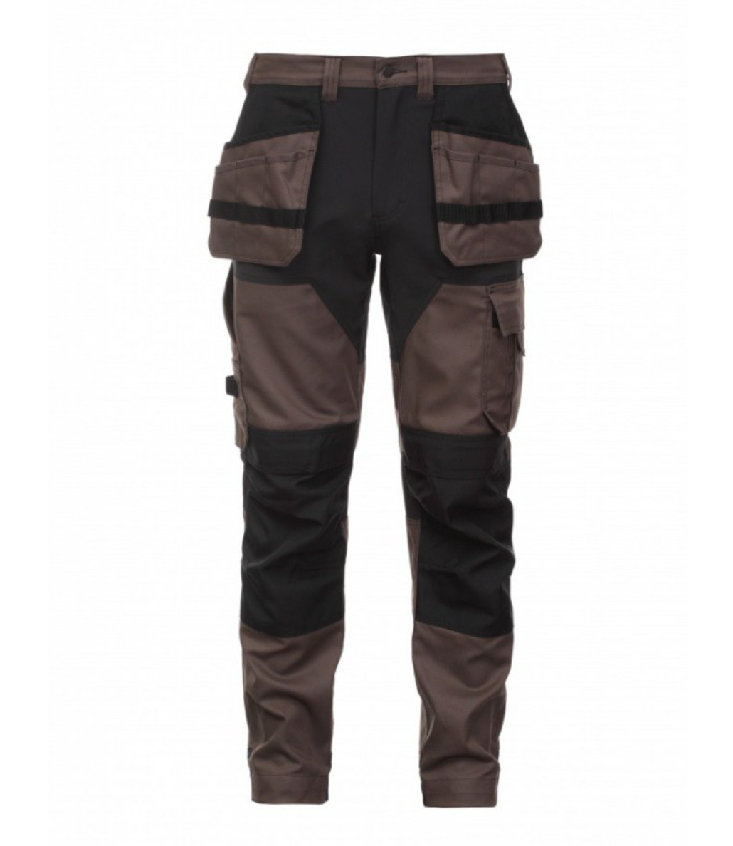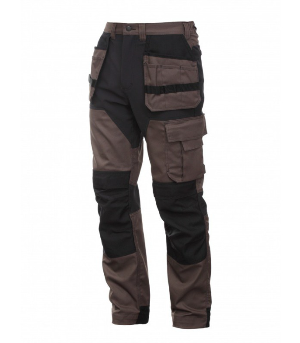 Bardzo wygodne, stylowe i trwałe spodnie MASHUP PLUS, które zapewniają swobodę i komfort. Spodnie wykonane są z bardzo oddychającej tkaniny Canvas, co pozwala czuć się komfortowo dzięki swobodnej cyrkulacji powietrza. W przodzie spodni znajdują się dwie przestronne kieszenie, zamykane na zamek w tylnej części spodni. Dodatkowo, z przodu spodni znajdują się duże kieszenie na narzędzia, które pozwalają na przenoszenie wszystkich najważniejszych narzędzi. Na lewej stronie spodni znajduje się kieszeń z zamkiem błyskawicznym, a na prawej kieszeń na narzędzia. Spodnie posiadają wbudowane elastyczne wstawki wykonane z materiału 4-WAY STRETCH, co pozwala na elastyczność podczas ruchu. Kieszenie na kolanach oraz zakończenia nogawek wzmocnione materiałem typu Cordura co przedłuża żywotność spodni.