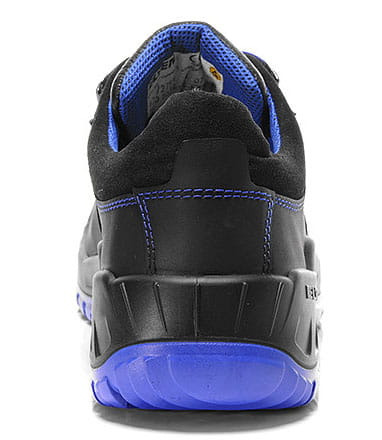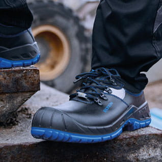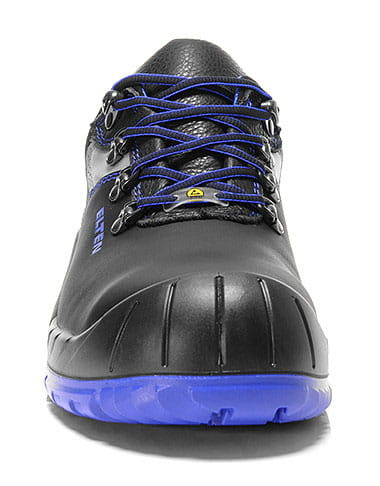 Jasnoniebieska, gruba podeszwa zewnętrzna z serii SAFETY GRIP zapewnia doskonałą przyczepność na niebezpiecznych powierzchniach. Wierzchni materiał składa się z mocnej, wytrzymałej skóry bydlęcej. Oddychająca tekstylna wyściółka została przetworzona wewnątrz, aby zapewnić zrównoważony klimat stopy. Stalowa nasadka i niezawierająca metalu ochrona przed przebiciem służą do ochrony przed spadającymi przedmiotami lub niebezpiecznymi przedmiotami leżącymi na podłodze. Ochrona końcówki PU zapobiega przedwczesnemu zużyciu buta ochronnego. But ochronny zgodny z ESD jest widoczny nawet przy słabej widoczności dzięki odblaskowemu materiałowi