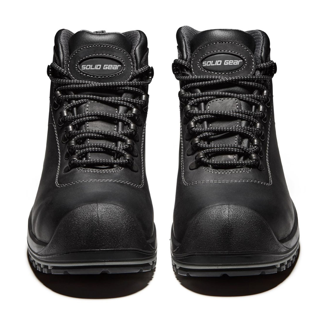 SOLID GEAR Apollo to nowoczesne obuwie ochronne oferujące połączenie wytrzymałości, lekkości oraz wyjątkowej wygody. To znakomite obuwie posiada wyróżniającą się odpornością na olej i poślizg zewnętrzną podeszwę Vibram® TPU, która gwarantuje doskonałą przyczepność na śniegu i lodzie nawet w przypadku bardzo niskich temperatur. Dodatkowo pełnoziarnista skóra licowa klasy premium zapewnia znakomitą wodoodporność oraz oddychalność.