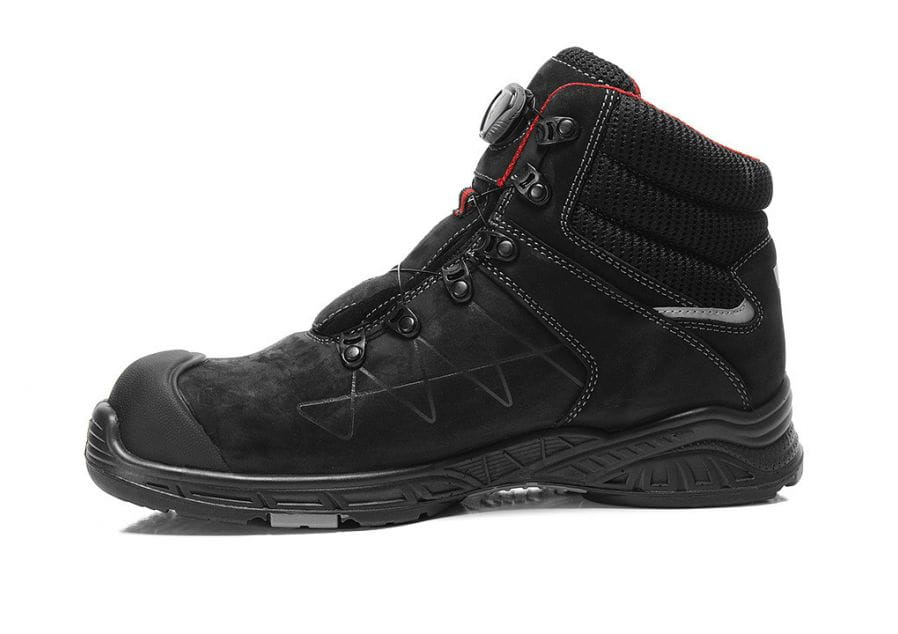 Jo_MAX BOA® Mid S3 firmy JORI to profesjonalista, jeśli chodzi o bezpieczeństwo. But ochronny wykonany z hydrofobowej skóry nubukowej i siateczki jest bardzo wytrzymały i wodoodporny. Kiedy trzeba coś zrobić szybko, BOA® Fit System gwarantuje szybkie zamykanie i otwieranie buta. Ochraniacz jest wyposażony w plastikową nasadkę i niezawierającą metalu ochronę przed przebiciem, aby skutecznie chronić stopy przed zagrożeniami. Lekki but jest wyposażony w czapkę z TPU, dzięki czemu zapobiega się przedwczesnemu zużyciu nawet podczas klęczenia, a użytkownik może korzystać z jo_MAX BOA® Mid S3 przez długi czas.