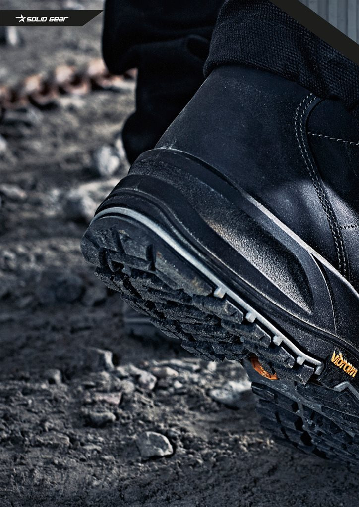 SOLID GEAR Sparta to nowoczesne obuwie ochronne oferujące połączenie wytrzymałości, lekkości oraz wyjątkowej wygody. To znakomite obuwie posiada wyróżniającą się odpornością na olej i poślizg zewnętrzną podeszwę Vibram® TPU, która gwarantuje doskonałą przyczepność na śniegu i lodzie nawet w przypadku bardzo niskich temperatur. Dodatkowo pełnoziarnista skóra licowa klasy premium zapewnia znakomitą wodoodporność oraz oddychalność. Model Sparta charakteryzuje się także podszewką THERMO, która łączy właściwości wełny i włókien technicznych, tworząc wiele warstw i zapewniając uczucie ciepła oraz suchości.