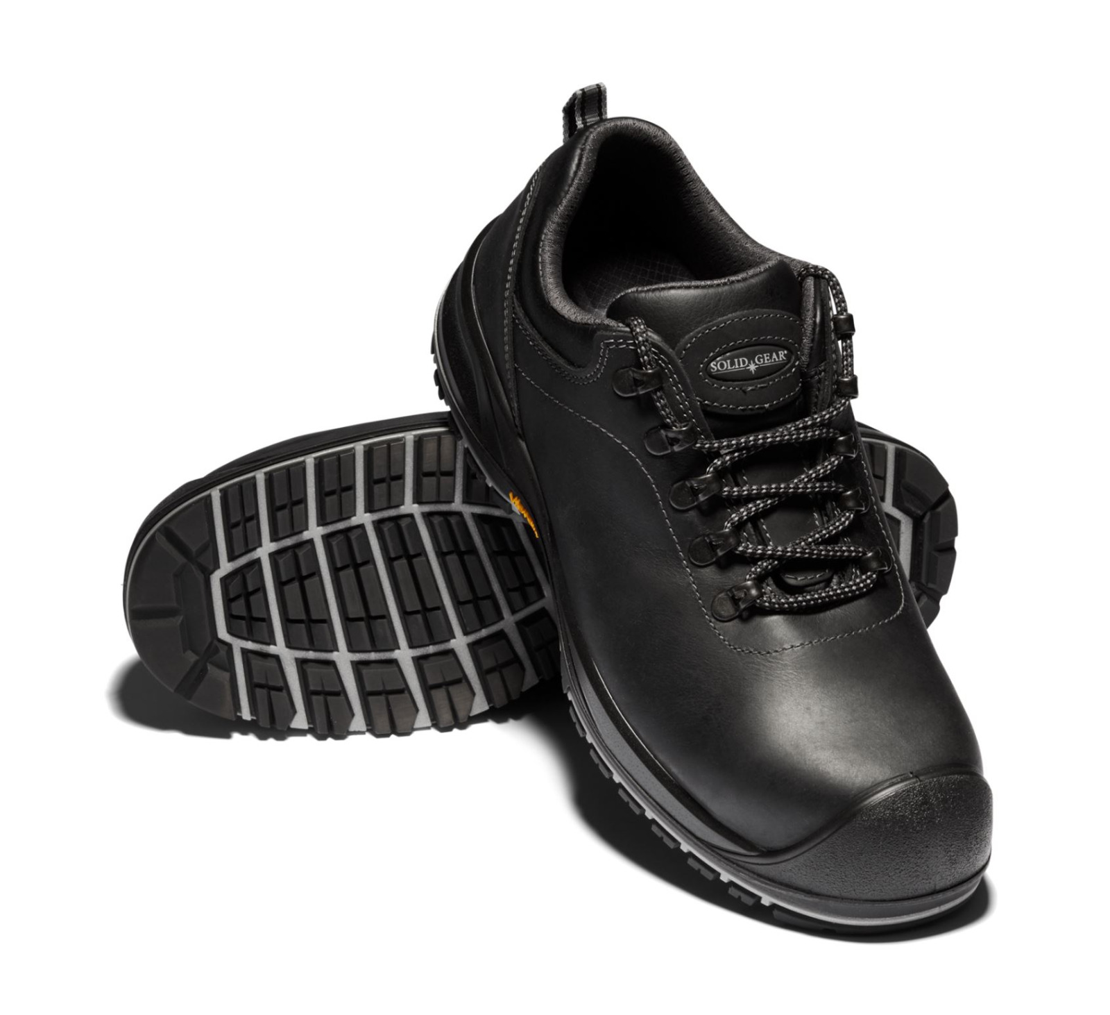 SOLID GEAR Atlas to nowoczesne obuwie ochronne oferujące połączenie wytrzymałości, lekkości oraz wyjątkowej wygody. To znakomite obuwie posiada wyróżniającą się odpornością na olej i poślizg zewnętrzną podeszwę Vibram® TPU, która gwarantuje doskonałą przyczepność na śniegu i lodzie nawet w przypadku bardzo niskich temperatur. Dodatkowo pełnoziarnista skóra licowa klasy premium zapewnia znakomitą wodoodporność oraz oddychalność.