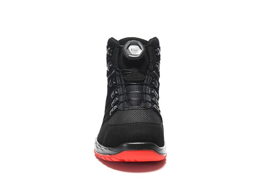 Buty ochronne wyróżniają się również mieszanką hydrofobowego materiału tekstylnego i hydrofobowej mikrofibry jako materiału wierzchniego, który jest uzupełniony oddychającą tekstylną wyściółką. Połączenie materiałów zapewnia przyjemny klimat dla stóp. Innowacyjny system BOA® Fit System zamyka but ochronny w mgnieniu oka.