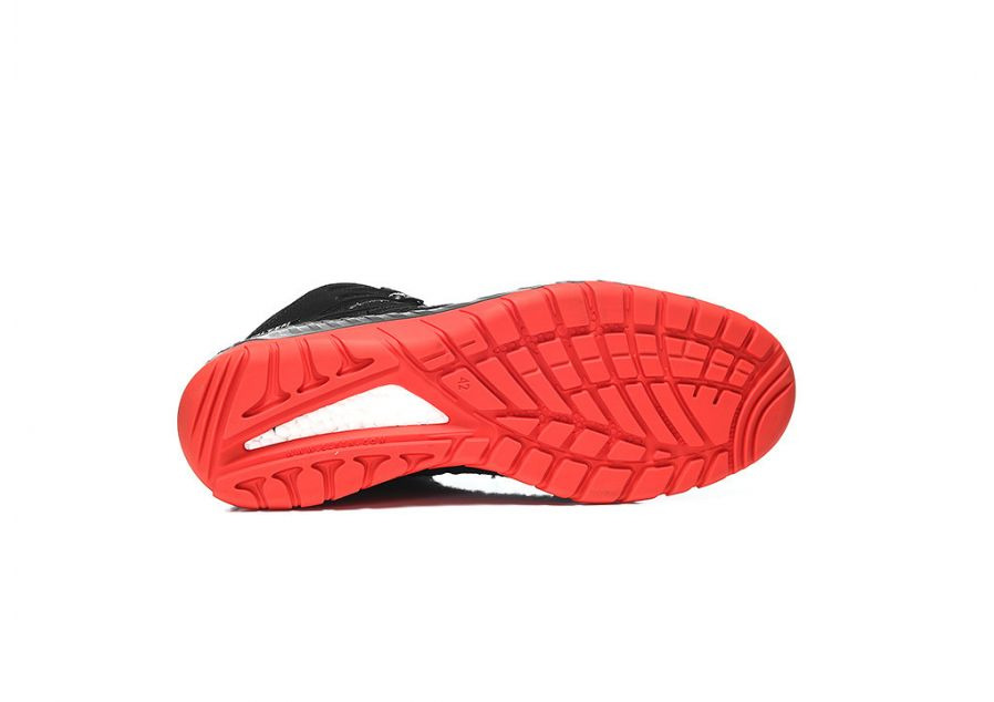 Wizualnie MADDOX BOA® czarno-czerwony Mid ESD S3 nie różni się od tenisówki, ale ma skoncentrowaną moc bezpieczeństwa, której potrzebuje but o klasie ochrony 3. Sportowa czerwona podeszwa z TPU/PU przyciąga wzrok i ma certyfikat SRC. Oznacza to, że oferuje szczególnie dobrą przyczepność. Stalowy podnosek i pozbawiona metalu ochrona przed przebiciem chronią stopy przed spadającymi lub ostrymi przedmiotami leżącymi na ziemi. Podeszwa, która składa się z Infinergy® firmy BASF, zapewnia optymalny komfort noszenia. Materiał zapewnia optymalną amortyzację i zwraca dużą część energii użytkownikowi podczas biegu.