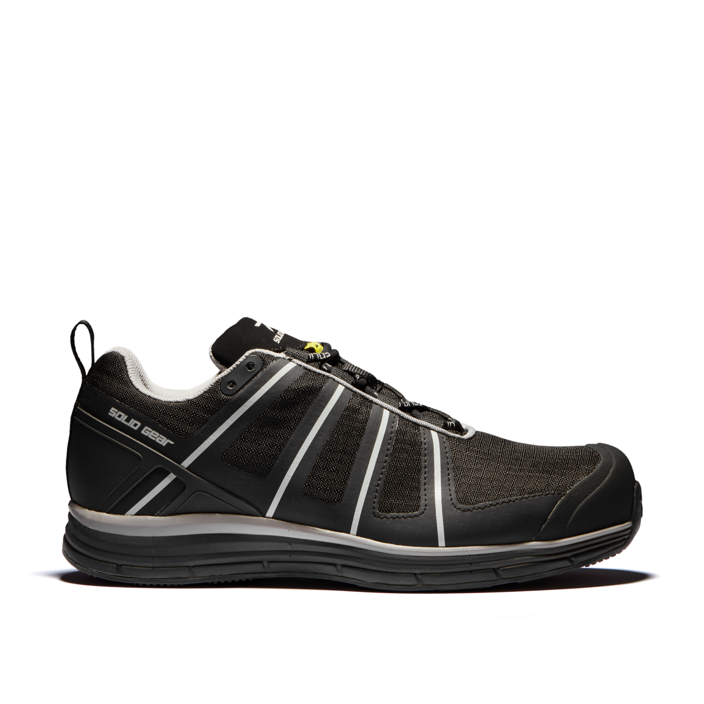 Evolution Black to sportowe obuwie ochronne nowej generacji od SOLID GEAR. Wyjątkowa środkowa podeszwa z pianki EVA o podwójnej gęstości zapewnia komfort na dużo wyższym poziomie. Nigdy wcześniej buty ochronne nie były do tego stopnia zbliżone do butów sportowych. Pozbawiona szwów cholewka zapewnia Evolution Black fantastyczne wyniki w zakresie oddychalności. SOLID GEAR wykorzystuje również opracowany niedawno podnosek ochronny NANO. 40% mocniejszy od włókna szklanego, lżejszy od innych używanych materiałów oraz cieńszy niż pozostałe podnoski ochronne pozbawione elementów metalowych. Zastosowanie PU-foam Sock Technology sprawia, że obuwie zapewnia najwyższy komfort w swojej klasie, a zgodność z antypoślizgową klasą SRC gwarantuje najwyższy poziom zabezpieczeń przed poślizgiem. Cholewka: Lekka pozbawiona szwów tkanina ripstop zapewniająca maksymalną oddychalność oraz wzmocnienie z TPU Zewnętrzna podeszwa: Antypoślizgowa guma odporna na olej Środkowa podeszwa: Pianka EVA o podwójnej gęstości Wkładka: Wyróżniająca się wysoką oddychalnością, pochłaniająca wilgoć oraz PU foam Krój: Szeroki Rozmiary: 36–48 Standard bezpieczeństwa: EN ISO 20345:2011 S1P, SRC Ochrona: Podnosek ochronny NANO i miękka pozbawiona elementów metalowych część stykająca się z palcami
