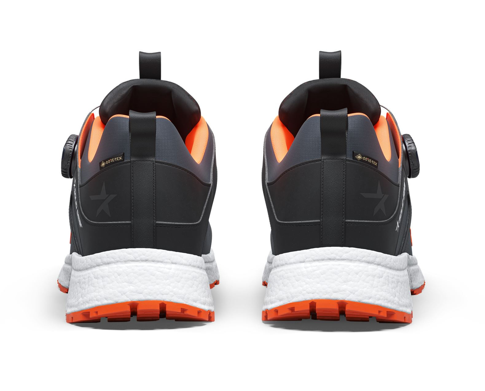 Revolution 2S GTX Low to naszpikowane technologią buty ochronne zaprojektowane z myślą o najwyższej wydajności w każdym terenie. Podeszwa środkowa ETPU i częściowo pochodząca z recyklingu wkładka OrthoLite® zapewniają doskonałą amortyzację i sprężystość, równocześnie gwarantując doskonały kontakt z podłożem wyjątkowo przyczepnej podeszwy zewnętrznej Michelin®. Wytrzymała cholewka CORDURA® ripstop z wyściółką GORE-TEX zapewnia stopom suchość i wentylację przez cały dzień, a system BOA® Fit zapewnia dopasowanie. Podnosek NANO, kompozytowa wkładka antyprzebiciowa i funkcja ESD zgodnie z normą EN IEC 61340-5-1:2016.