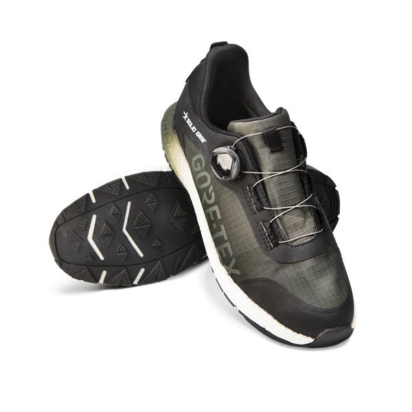 Solid Gear Dynamo to wyjątkowe połączenie buta przeznaczonego zarówno do biegów trailowych, jak i biegowych. Podeszwa środkowa wykonana w całości z ETPU zapewnia optymalny komfort i odbicie. Stabilność wynika z charakteru buta trailowego, ze specjalną konstrukcją płytki do kontroli zginania. Gumowa podeszwa zewnętrzna została opracowana z myślą o zapewnieniu doskonałej przyczepności i pomimo lekkości podeszwy przyczynia się również do stabilności. Cholewka ripstop o konstrukcji skarpety w połączeniu z BOA® Fit i technologią GORE-TEX® Stretch zapewnia wspaniałe czucie przy zachowaniu doskonałej oddychalności i utrzymuje stopę suchą. Dynamo GTX wykorzystuje specjalnie opracowaną wkładkę OrthoLite® o wysokim odbiciu, wykonaną głównie z materiałów pochodzących z recyklingu. Stabilizujący zapiętek wykonany został z zebranych odpadów oceanicznych, takich jak sieci na ryby. Antystatyczna, olejoodporna i antypoślizgowa to cechy gumowej podeszwy, które pozwalają na certyfikację Solid Gear Dynamo GTX zgodnie z normą EN-20347:2012. Cholewka: Ripstop Podszewka: stretch Membrana: GORE-TEX® Podeszwa: guma odporna na olej i poślizg Podeszwa środkowa: ETPU Wkładka: pianka PU z wysoce oddychającymi materiałami z recyklingu Funkcja: System dopasowania BOA® Dopasowanie: normalne Rozmiary: 35-48 Norma bezpieczeństwa: EN ISO 20347:2012 O2, FO, SRC, WR