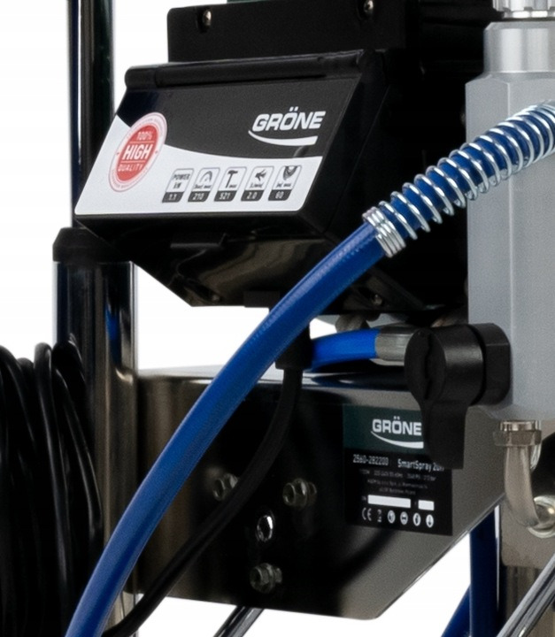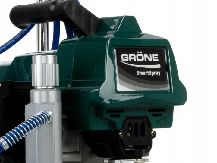 GRONE Smart Spray 28H to niezawodny agregat malarski przeznaczony do malowania wnętrz i elewacji. Wyposażony w wytrzymałą pompę, ramę na dużych kołach oraz elektroniczną regulację ciśnienia, zapewnia długotrwałą i efektywną pracę. Dzięki wbudowanemu wyświetlaczowi LCD, użytkownik ma pełną kontrolę nad parametrami pracy urządzenia.