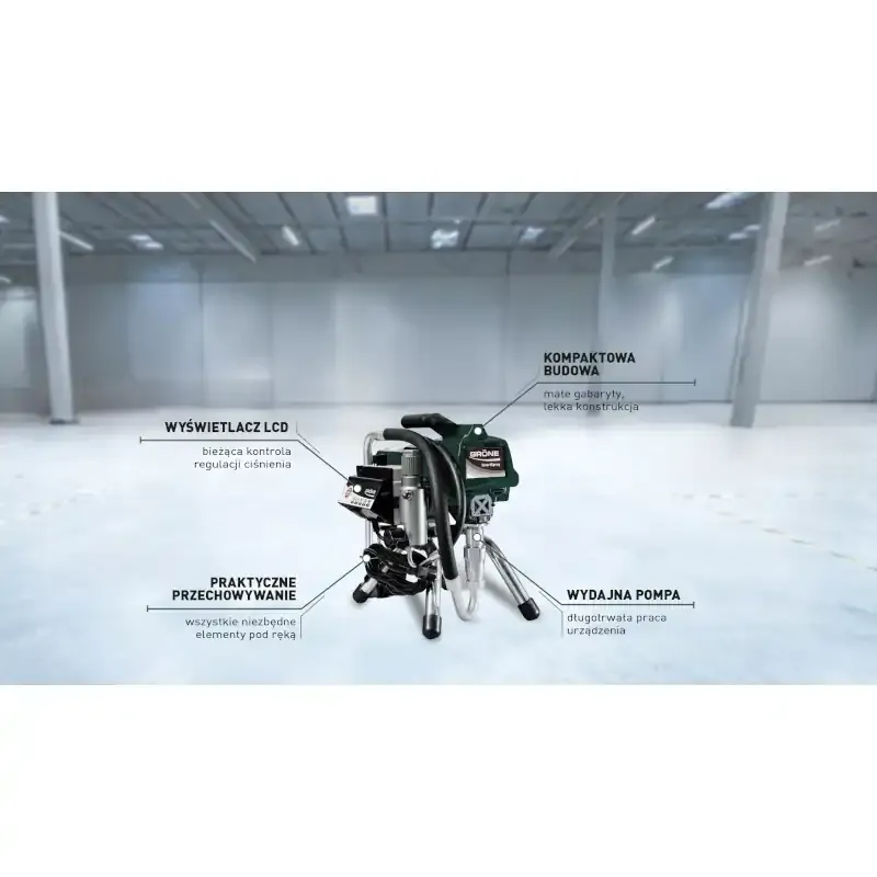 Agregat malarski SmartSpray 20L marki GRÖNE to kompaktowe i mobilne urządzenie stworzone z myślą o profesjonalistach, którzy cenią sobie wygodę i wydajność. Dzięki lekkiej konstrukcji i niewielkim rozmiarom, idealnie nadaje się do pracy w trudno dostępnych miejscach, zachowując jednocześnie wysoką jakość i efektywność malowania.