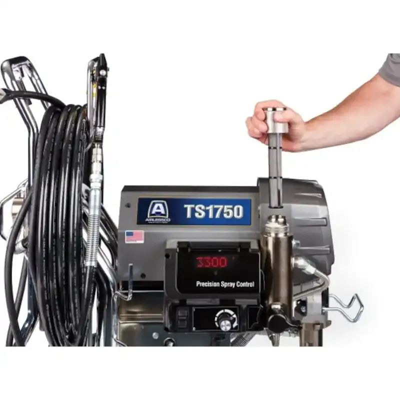 Airlessco TS1750 to niezawodne urządzenie do aplikacji gładzi szpachlowych, farb oraz mas wykończeniowych, dedykowane do dużych inwestycji budowlanych. Wyposażony w zaawansowaną technologię i wzmocnioną konstrukcję, agregat gwarantuje trwałość, wydajność i łatwość obsługi. Zastosowanie takich rozwiązań jak Quick Repair Pump™ i cyfrowy wyświetlacz LED zapewnia minimalizację przestojów i precyzyjną kontrolę ciśnienia.