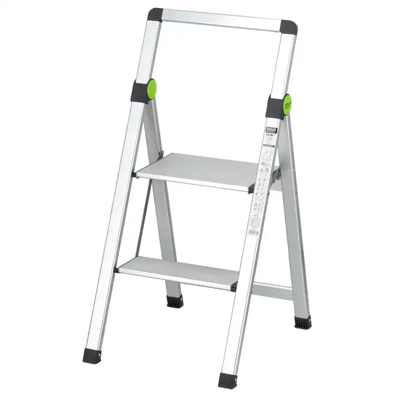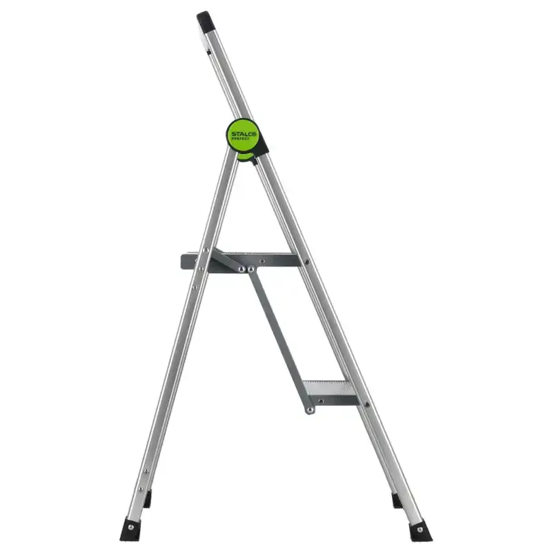 DRABINA MINI SLIM 2-STOPNIE STALCO to niezwykle kompaktowa i wytrzymała drabina domowa, wykonana z lekkiego aluminium. Dzięki szerokiemu profilowi i stabilnemu podestowi zapewnia maksymalny komfort i bezpieczeństwo użytkowania. Jej smukła konstrukcja (tylko 5,5 cm po złożeniu) pozwala na łatwe przechowywanie w ciasnych miejscach. Udźwig do 150 kg!