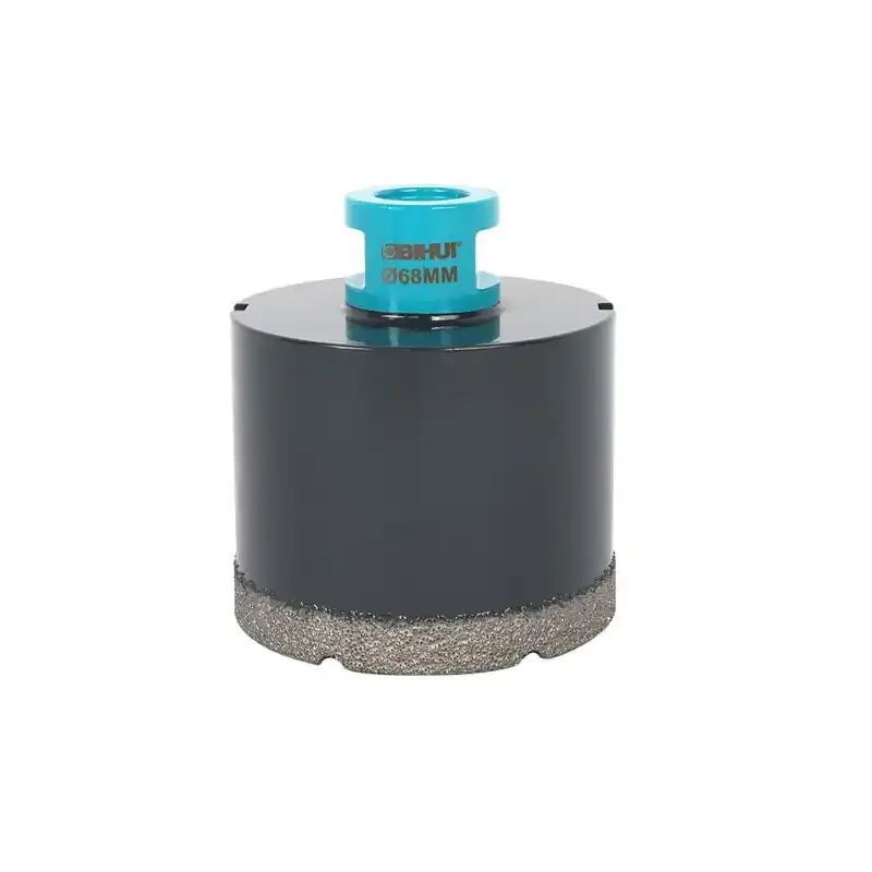 Profesjonalna otwornica diamentowa BIHUI o średnicy 68 mm z gwintem M14, idealna do precyzyjnego wiercenia w płytkach, wylewkach, cegłach i suporeksie. Lutowanie próżniowe zapewnia długą żywotność narzędzia.