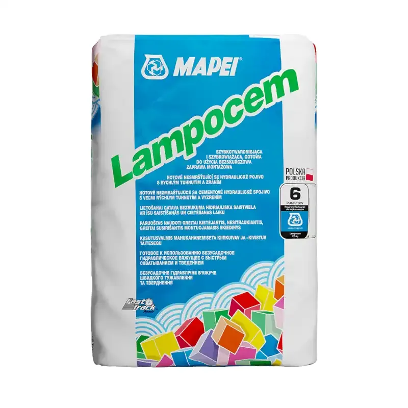 LAMPOCEM to doskonałe rozwiązanie dla szybkich i wymagających prac montażowych. Jego wyjątkowo krótki czas wiązania, brak skurczu i łatwość aplikacji sprawiają, że jest niezastąpiony zarówno w pracach budowlanych, jak i naprawczych.