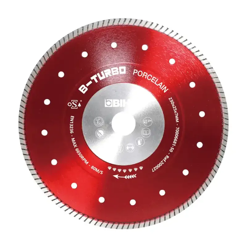 Profesjonalna tarcza diamentowa BIHUI B-Turbo o średnicy 230 mm zaprojektowana z myślą o szybkim, precyzyjnym i efektywnym cięciu płytek ceramicznych, porcelanowych oraz innych twardych materiałów. Dzięki cienkiej obręczy i specjalnej konstrukcji, tarcza zapewnia mniej pyłu, minimalne odpryski i wysoką wydajność cięcia.