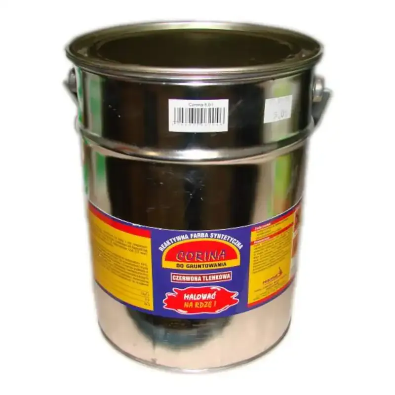 Corina Reaktywna farba syntetyczna podkładowa 5 l Wysoce odporna na czynniki atmosferyczne farba podkładowa do gruntowania powierzchni stalowych, żeliwnych i cynkowanych. Może być stosowana bez pełnego usuwania rdzy. Idealna do przemysłu okrętowego i powierzchni narażonych na działanie olejów i benzyny.