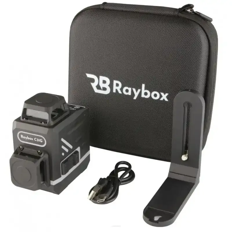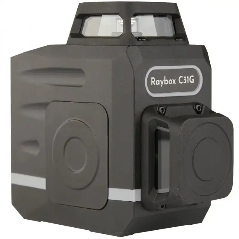 Laser płaszczyznowy Raybox C31G to profesjonalne narzędzie, które precyzyjnie wyznacza płaszczyznę poziomą oraz pionową w pełnym zakresie 360º. Dzięki tej funkcjonalności, urządzenie sprawdzi się w różnorodnych zastosowaniach budowlanych i montażowych, takich jak montaż szafek wiszących, okien, oświetlenia sufitowego czy wyznaczanie kątów prostych między ścianami działowymi.