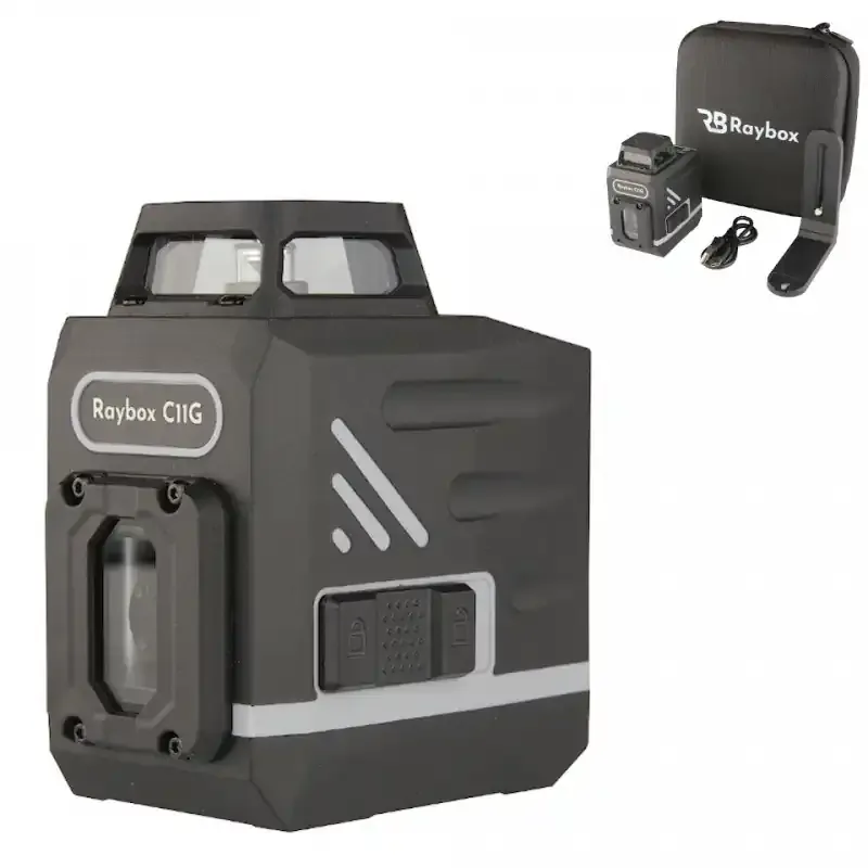 Raybox C11G to nowoczesne urządzenie laserowe, zaprojektowane z myślą o profesjonalistach oraz entuzjastach majsterkowania. Dzięki zaawansowanej technologii laserowej, urządzenie zapewnia wyjątkową dokładność i wszechstronność, idealną do różnorodnych zastosowań budowlanych i montażowych. Raybox C11G wyznacza płaszczyznę poziomą w pełnym zakresie 360° oraz jedną linię pionową, co ułatwia precyzyjne montowanie okien, szafek oraz innych elementów.
