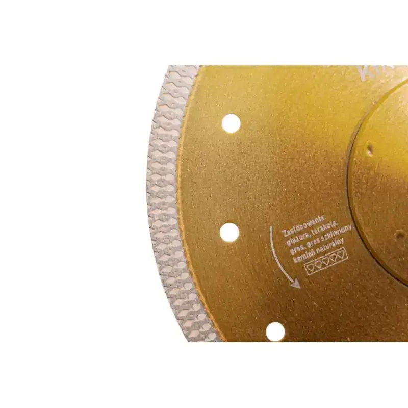- Uniwersalność – tarcza jest przeznaczona zarówno do cięcia na sucho, jak i na mokro, co sprawia, że można jej używać w różnych warunkach i przy minimalnej ilości generowanego pyłu.