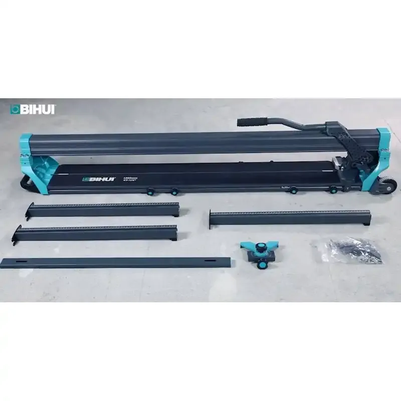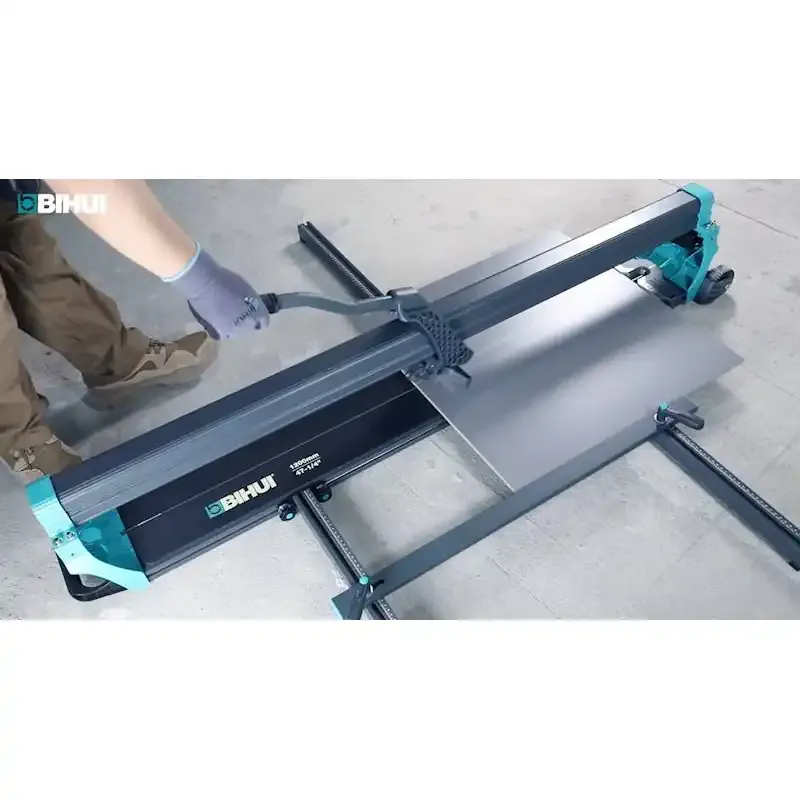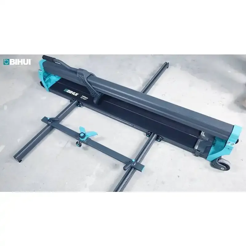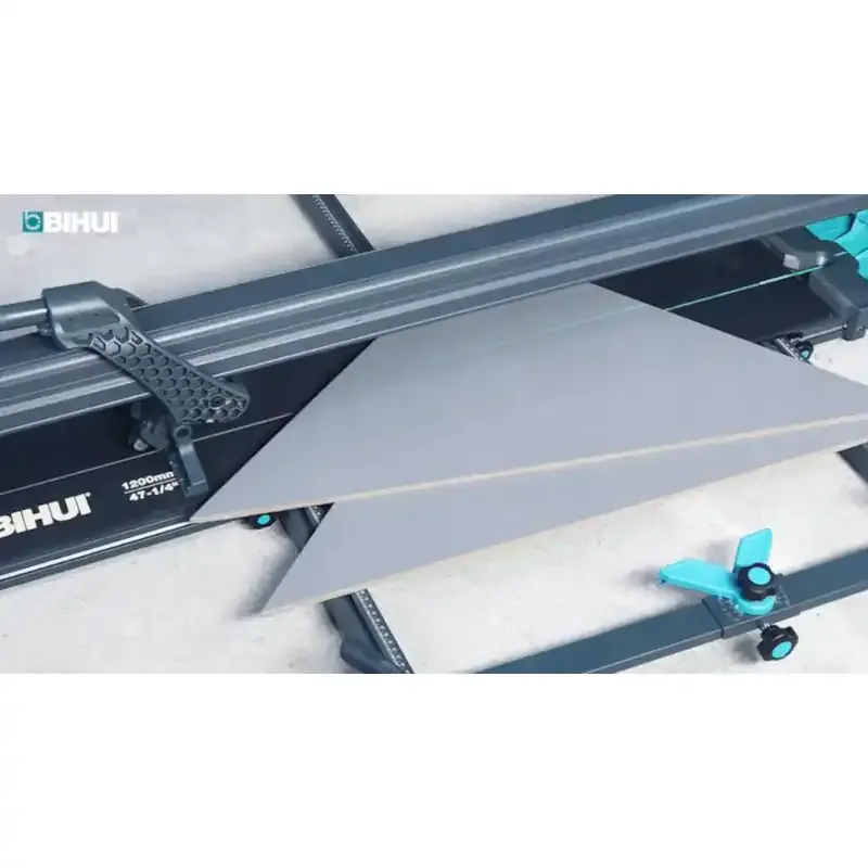 Profesjonalna przecinarka ręczna BIHUI TCP 1200 mm do precyzyjnego cięcia płytek, gresu i kamienia naturalnego o długości do 1220 mm i grubości do 15 mm. Wyposażona w zielony laser, dwa punkty łamania, boczne podpory oraz kółka transportowe. Idealna do zastosowań profesjonalnych.