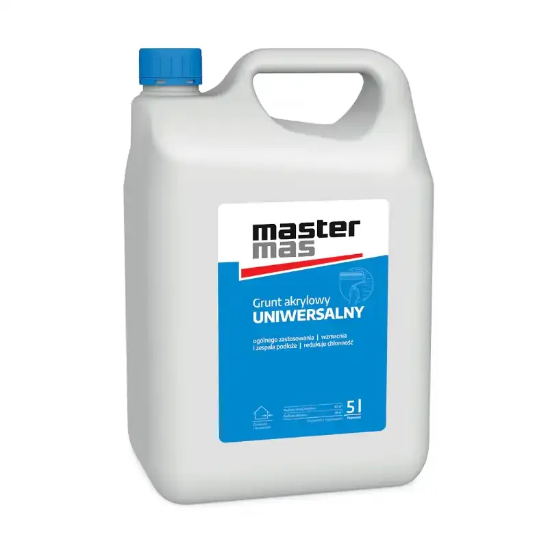 Grunt akrylowy MasterMas Uniwersalny – gotowy do użycia grunt do porowatych i chłonnych podłoży. Wzmacnia strukturę, zwiększa przyczepność i reguluje chłonność powierzchni. Do stosowania wewnątrz i na zewnątrz.