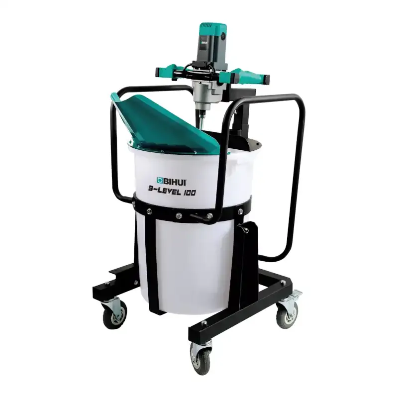 BIHUI Stacja mieszania wylewek samopoziomujących – zaawansowana maszyna o pojemności 120L, wyposażona w mocną mieszarkę 1900W. Ergonomiczny design, kółka transportowe oraz precyzyjna wylewka ułatwiają pracę i zapewniają efektywne mieszanie cementu, żywic epoksydowych i innych materiałów.