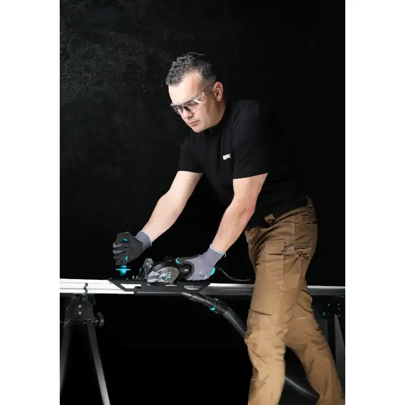 - Zakres cięcia kątowego: Możliwość cięcia pod kątem w zakresie 45°-48° dzięki tarczy diamentowej.