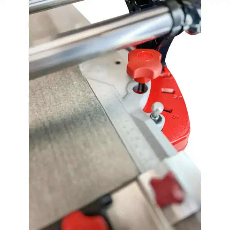 Wykonana z rur stalowych o średnicy 30 mm i głowicy z wydłużonymi, aluminiowymi ślizgami, przecinarka TX-MAX oferuje imponującą trwałość i stabilność. System przymiarów umożliwia cięcia w zakresie od 0° do 45°, zapewniając maksymalną dokładność podczas pracy.
