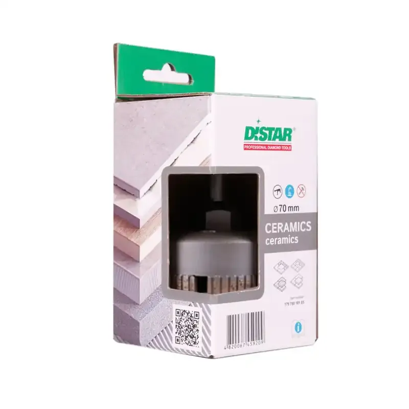Wiertło DDS-W 70x47 S10 Ceramics marki Distar to nowoczesne narzędzie do wiercenia otworów w twardym gresie i ceramice. Dzięki innowacyjnej technologii spiekania segmentów diamentowych, narzędzie gwarantuje wykonanie nawet 300 otworów, co czyni je wyjątkowo wydajnym i niezawodnym rozwiązaniem dla profesjonalistów.