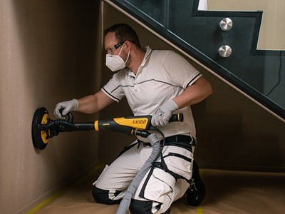 Szlifierka Mirka® LEROS-S jest idealnym narzędziem do szlifowania ścian i sufitów, zarówno w ciasnych, jak i dużych przestrzeniach. Dzięki elastycznej głowicy, możliwości bezpyłowego szlifowania oraz kompaktowym rozmiarom, zapewnia wygodę użytkowania oraz doskonałe rezultaty pracy.
