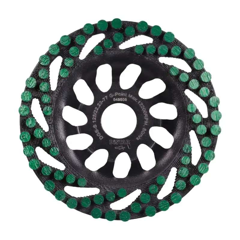 Frez diamentowy Distar DGS-S Green Point to idealne narzędzie do szlifowania twardego betonu, podłóg samopoziomujących oraz usuwania powłok farb i polimerów. Wyposażony w 77 segmentów diamentowych, zapewnia wydajną i precyzyjną pracę. Przeznaczony do pracy na sucho z szlifierkami o mocy min. 1,2 kW.