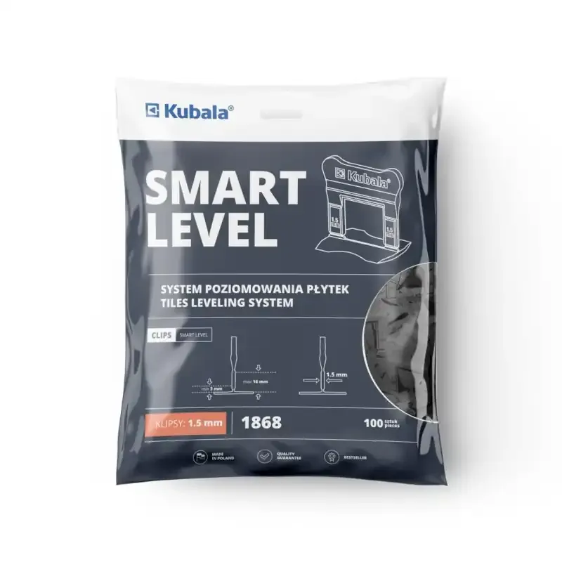 Klipsy SMART LEVEL 1,5 mm doskonale nadają się do poziomowania płytek ceramicznych, gresowych i innych materiałów wykończeniowych. Zapewniają równą fugę i profesjonalne rezultaty pracy.