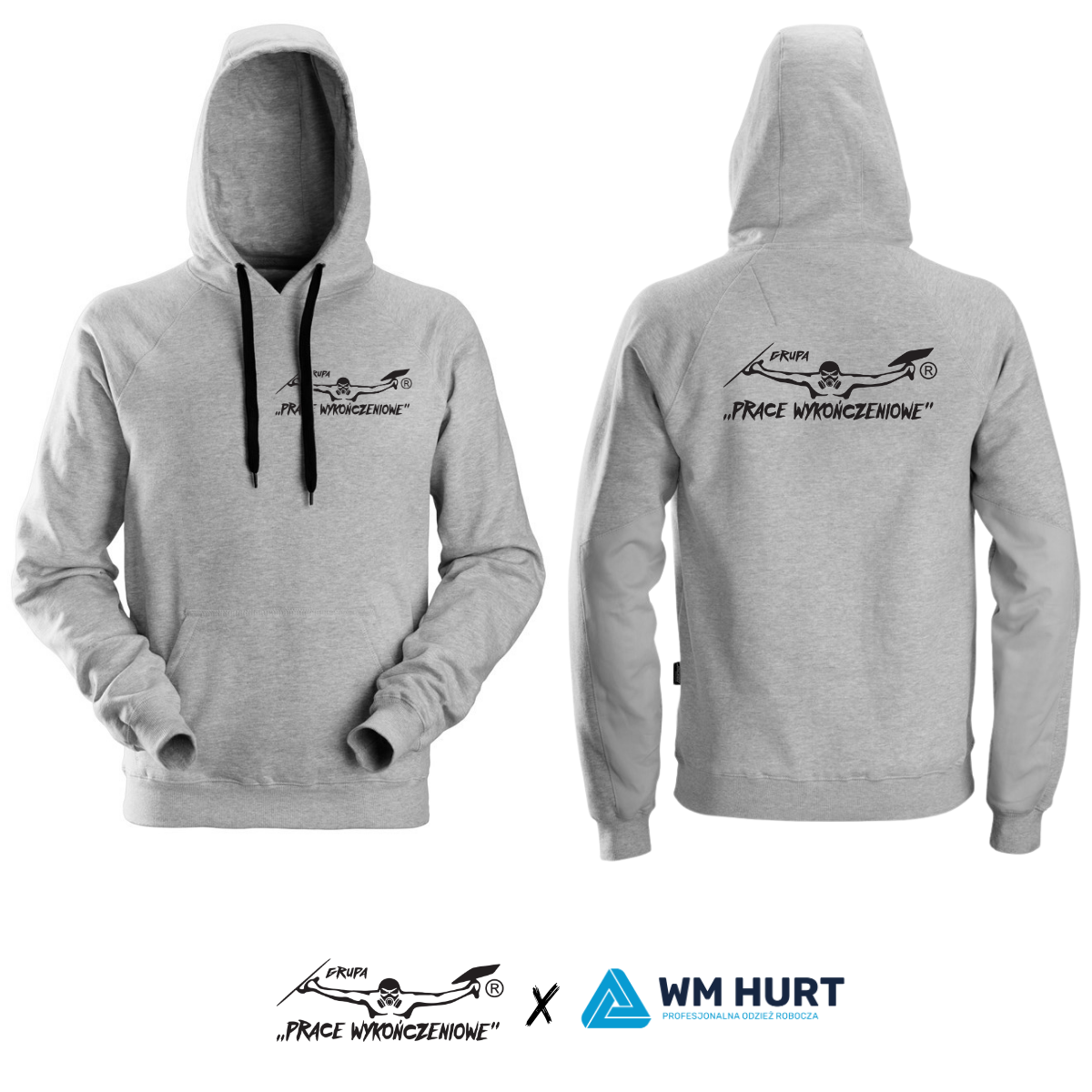 Bluza Snickers z kapturem z haftem logo Grupy Prace Wykończeniowe - małe logo na piersi + logo na plecach