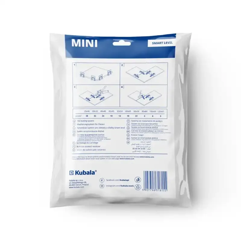 Kliny SMART LEVEL MINI to wielofunkcyjne narzędzie do precyzyjnego układania płytek o mniejszych formatach. Dzięki możliwości wielokrotnego użycia oraz kompatybilności z systemem SMART LEVEL, kliny znacząco ułatwiają i przyspieszają pracę. Idealne do zastosowania w trudno dostępnych miejscach oraz przy ręcznym zaciskaniu.