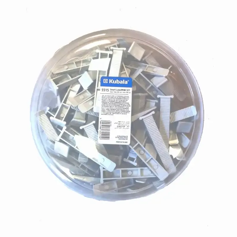 Pełny zestaw do poziomowania płytek SMART LEVEL MINI. Zawiera 200 klipsów 1 mm, 100 klinów oraz praktyczne wiaderko. Idealny do poziomowania płytek ściennych i podłogowych. Prosty montaż i demontaż, gwarantowany precyzyjny efekt końcowy.