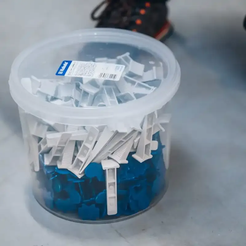 - 100 klinów: Stabilizują i utrzymują poziom płytek podczas schnięcia kleju.