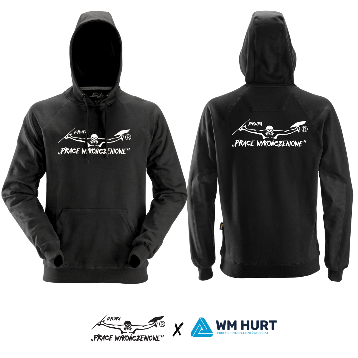 Bluza Snickers z kapturem z haftem logo Grupy Prace Wykończeniowe - duże logo na piersi + logo na plecach