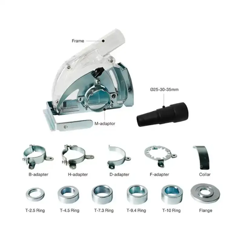 Marketingowy i funkcjonalny adapter od BIHUI, przeznaczony do odpylania podczas cięcia płytek, bruzdowania pod przewody elektryczne i innych prac wewnątrz pomieszczeń. Montowany na szlifierkach kątowych z tarczą 115–125 mm, umożliwia bezpośrednie podłączenie do odkurzacza, co pozwala zachować czystość i zwiększa komfort pracy.