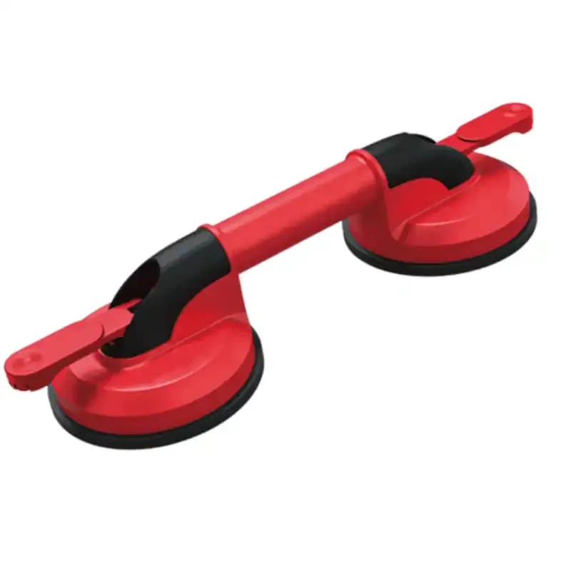 Przyssawka podwójna WERTEC WT620 – profesjonalne narzędzie do bezpiecznego transportu szyb, glazury, blatów i plexi. Dwie przyssawki Ø 118 mm na lekkiej, aluminiowej ramie, udźwig do 130 kg, ergonomiczna rączka z dźwignią – szybki chwyt i wypuszczenie.