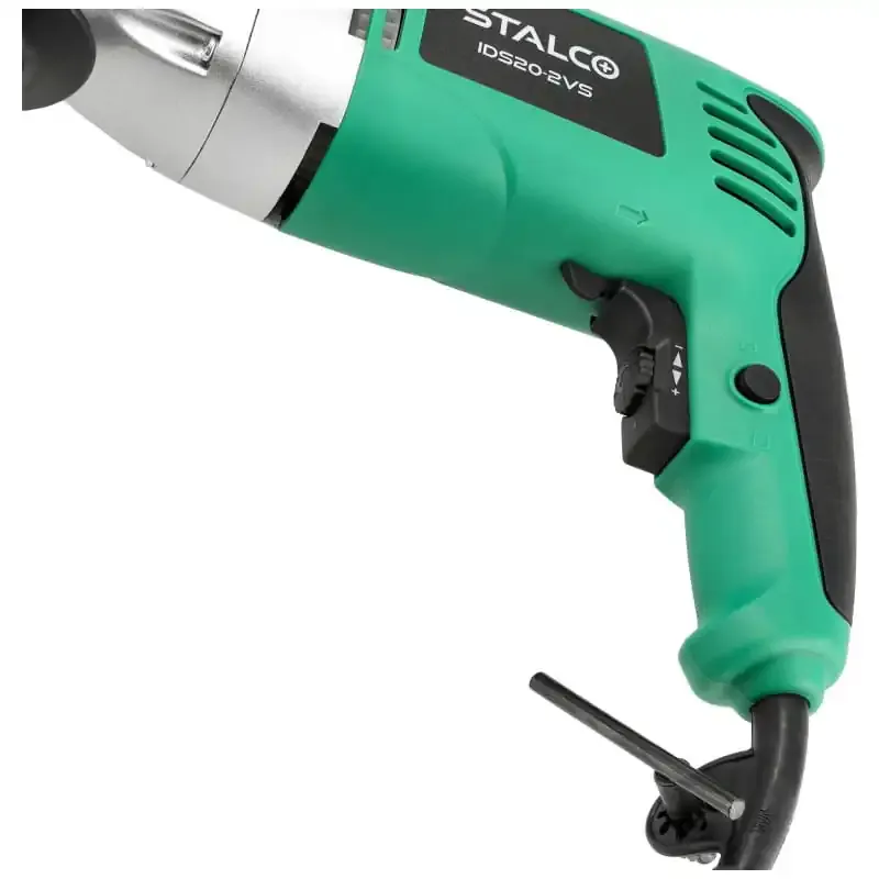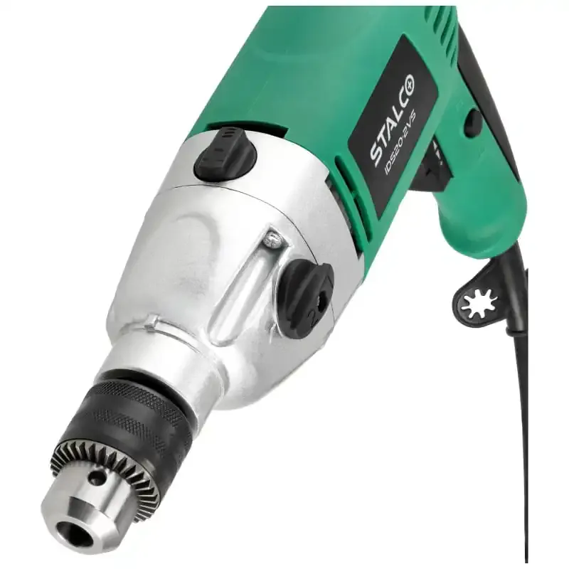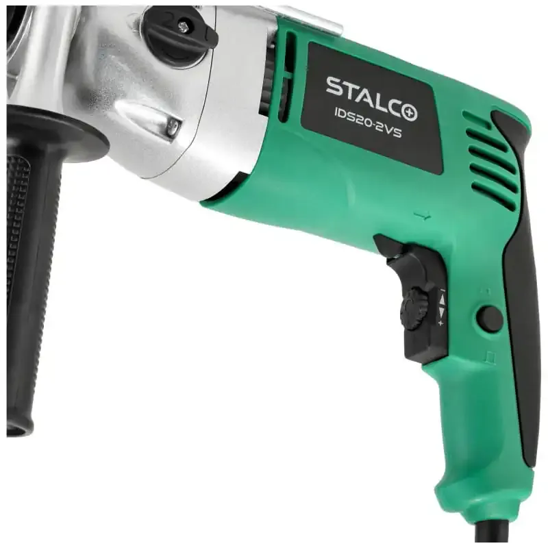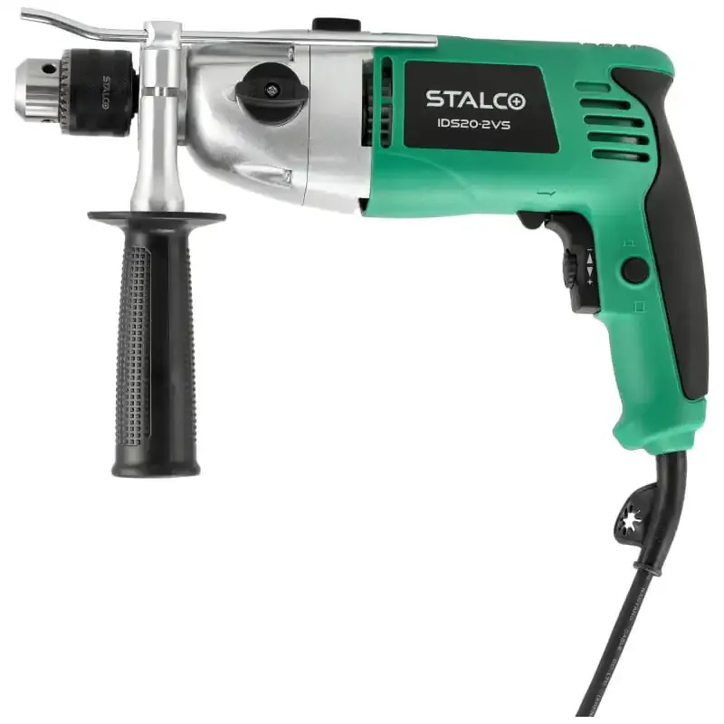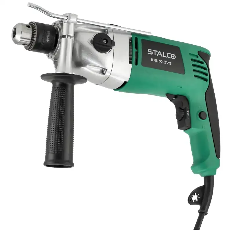 Wiertarka Udarowa Stalco IDS20-2VS Premium z mocą 1050W, dwoma biegami i funkcją udaru. Idealna do wiercenia w betonie, stali i drewnie. W zestawie: uchwyt dodatkowy, klucz do uchwytu oraz ogranicznik głębokości.