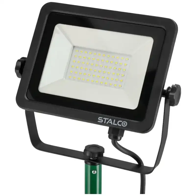Reflektor Budowlany Stalco 50W FL – wydajne źródło światła o strumieniu 4500 lumenów. Wytrzymała konstrukcja z ochroną IP65, regulowany statyw oraz żywotność diod LED do 30 000 godzin sprawiają, że idealnie nadaje się do pracy w wymagających warunkach.