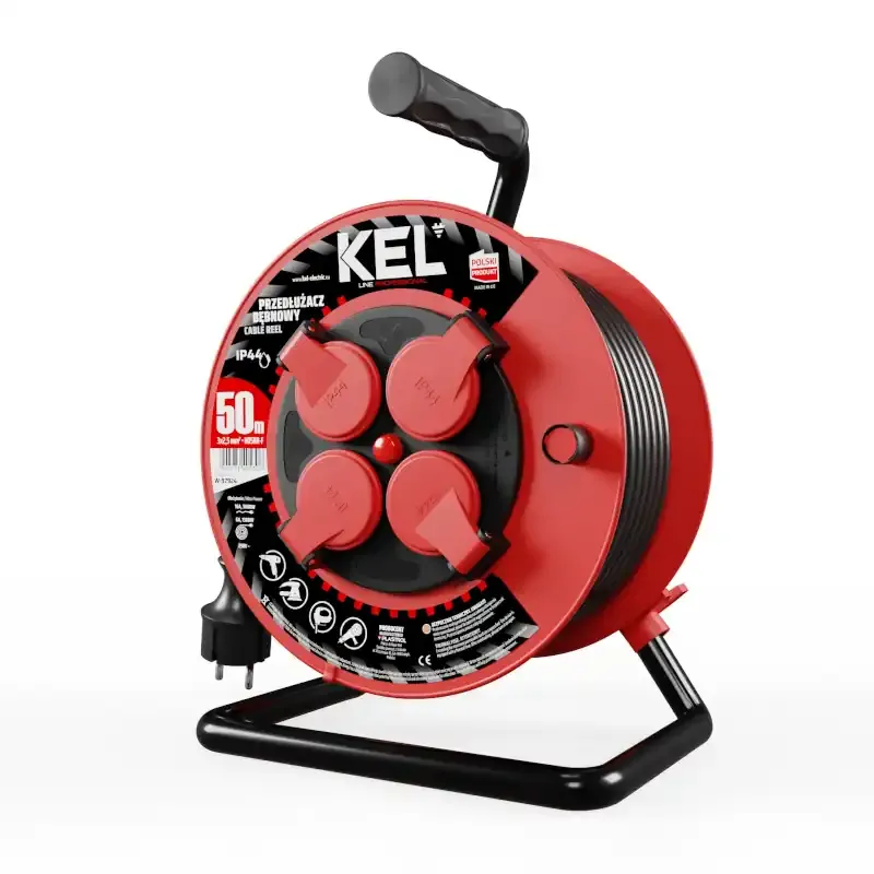 Przedłużacz bębnowy warsztatowy PROFESSIONAL LINE o długości 50 m z solidnym przewodem 3×2,5 mm². Przeznaczony do intensywnego użytku warsztatowego, zapewnia maksymalne obciążenie 16A/3680W. Wyposażony w 4 gniazda 2P+Z.
