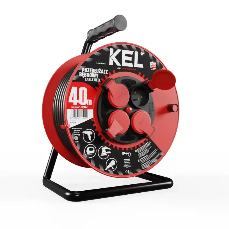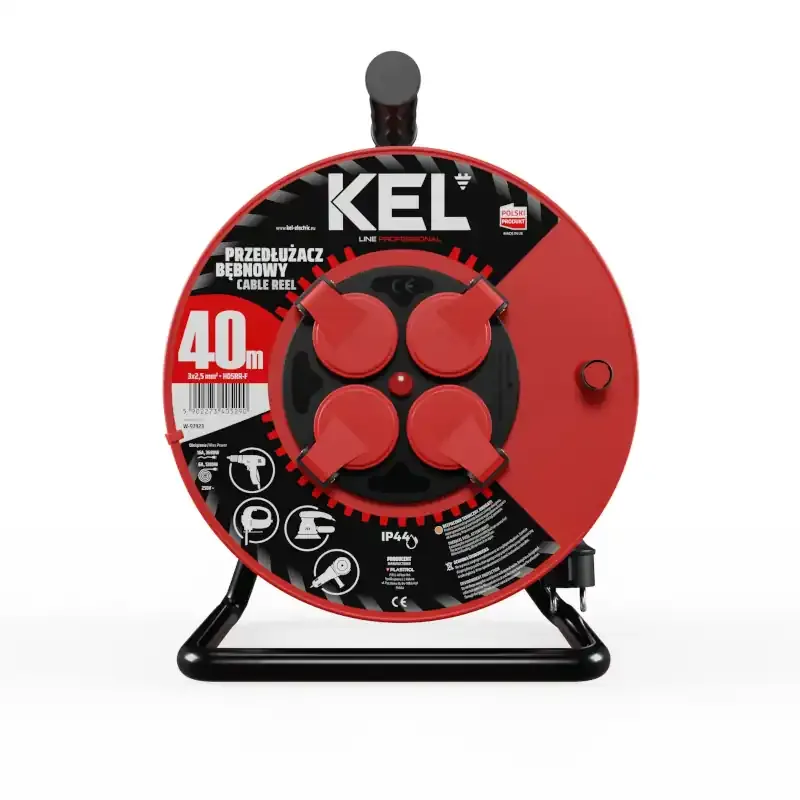 Przedłużacz bębnowy warsztatowy PROFESSIONAL LINE o długości 40 m z przewodem 3×2,5 mm². Wyposażony w 4 gniazda 2P+Z oraz solidny bęben, zapewnia niezawodność i wydajność przy maksymalnym obciążeniu 16A/3680W.