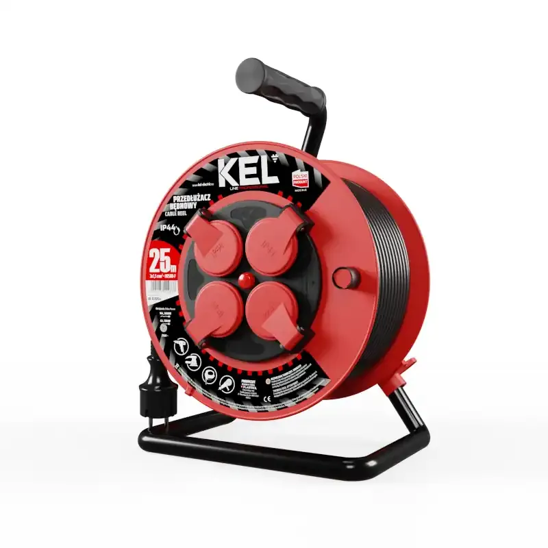 Profesjonalny przedłużacz bębnowy PROFESSIONAL LINE to niezawodne rozwiązanie dla wymagających użytkowników. Wyposażony w przewód o długości 25 metrów i przekroju 3×1,5 mm², doskonale nadaje się do prac warsztatowych, remontowych i domowych.