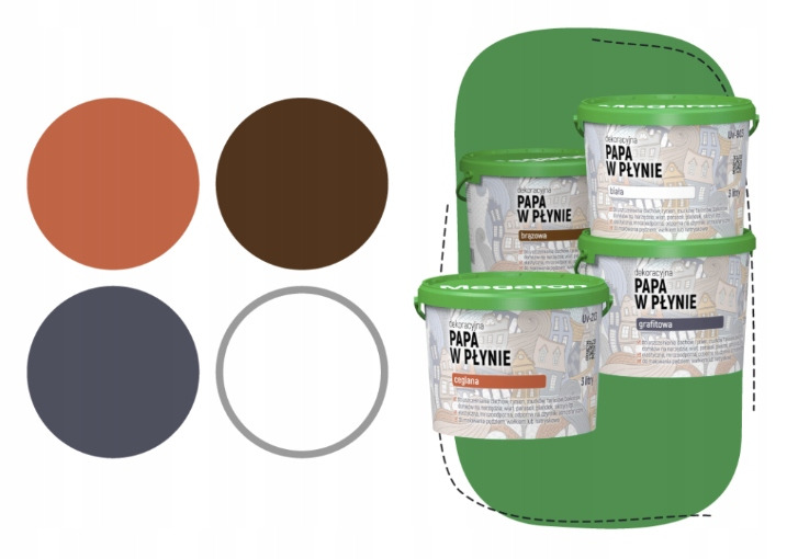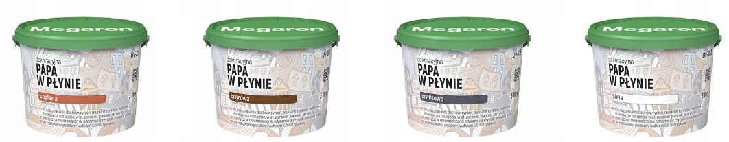 Dekoracyjna Papa w Płynie Megaron jest elastycznym materiałem powłokowym, służącym do zabezpieczania zewnętrznych powierzchni. Papę można zastosować zarówno w celu ochronnym, jak i dekoracyjnym.