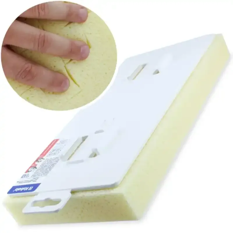Przeznaczona do mycia płytek po spoinowaniu. Nacięcia w gąbce umożliwiają szybkie i skuteczne usuwanie zabrudzeń, co czyni ją idealnym narzędziem zarówno dla profesjonalistów, jak i majsterkowiczów. Zaleca się odciskanie gąbki na rolkach wiadra glazurniczego, co dodatkowo zwiększa efektywność pracy.
