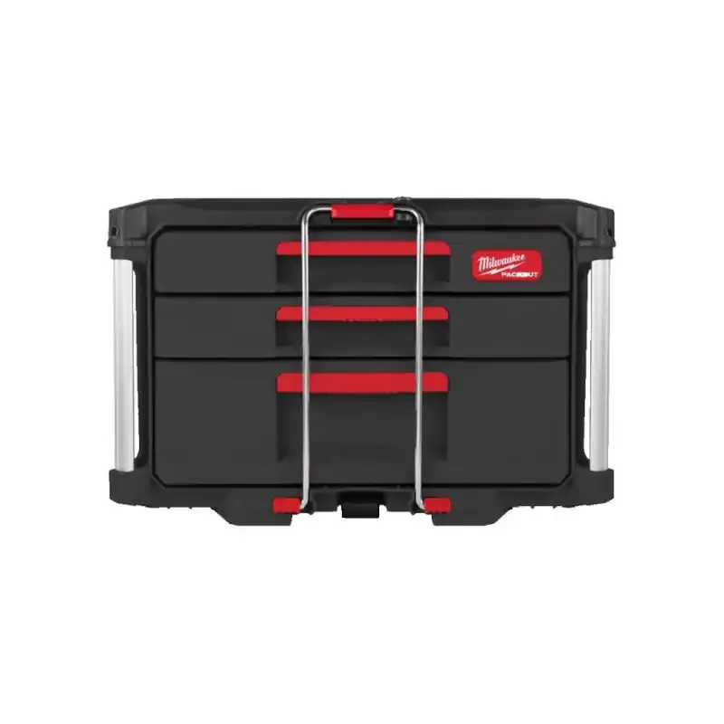 Skrzynia PACKOUT z 4 szufladami Milwaukee to modułowe rozwiązanie do organizacji narzędzi i akcesoriów. Dzięki prowadnicom kulkowym, regulowanym przegródkom i wytrzymałej konstrukcji zapewnia wygodę i trwałość w miejscu pracy.