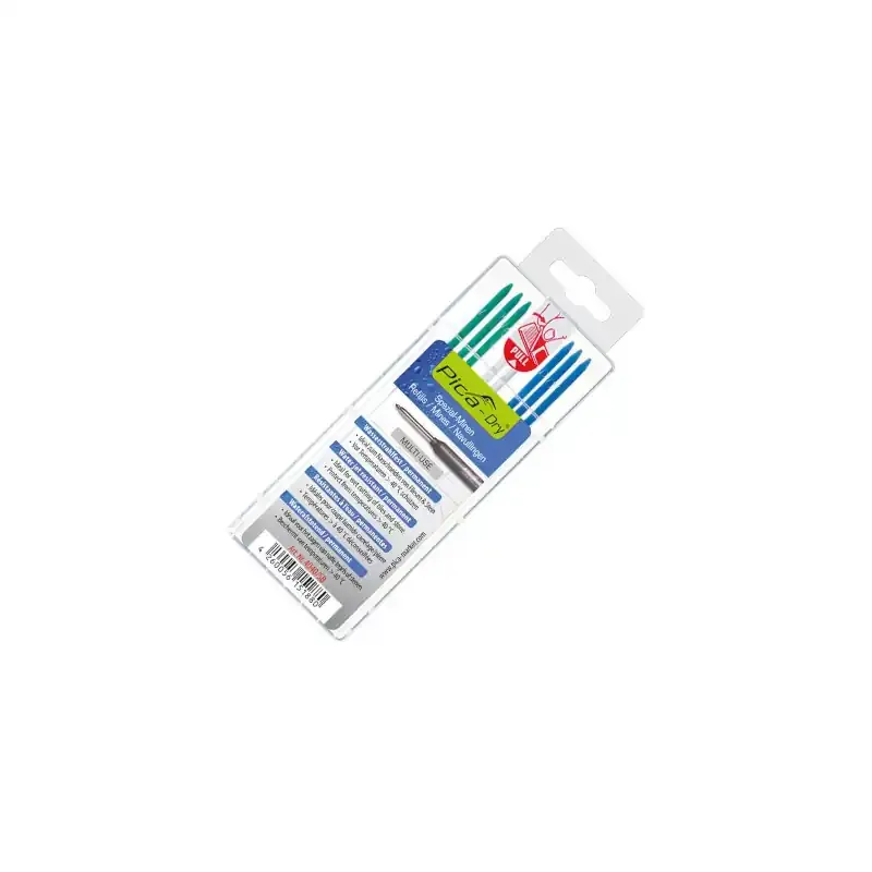 Specjalistyczne wkłady grafitowe Pica Dry na mokro zostały stworzone z myślą o precyzyjnym oznaczaniu na powierzchniach mokrych, takich jak kamień czy płytki ceramiczne. Dzięki wodoodpornej konstrukcji i wysokiej trwałości, doskonale sprawdzają się w wymagających warunkach pracy. Fabrycznie zaostrzone i wolne od chlorków, oferują niezrównaną jakość i precyzję znakowania.