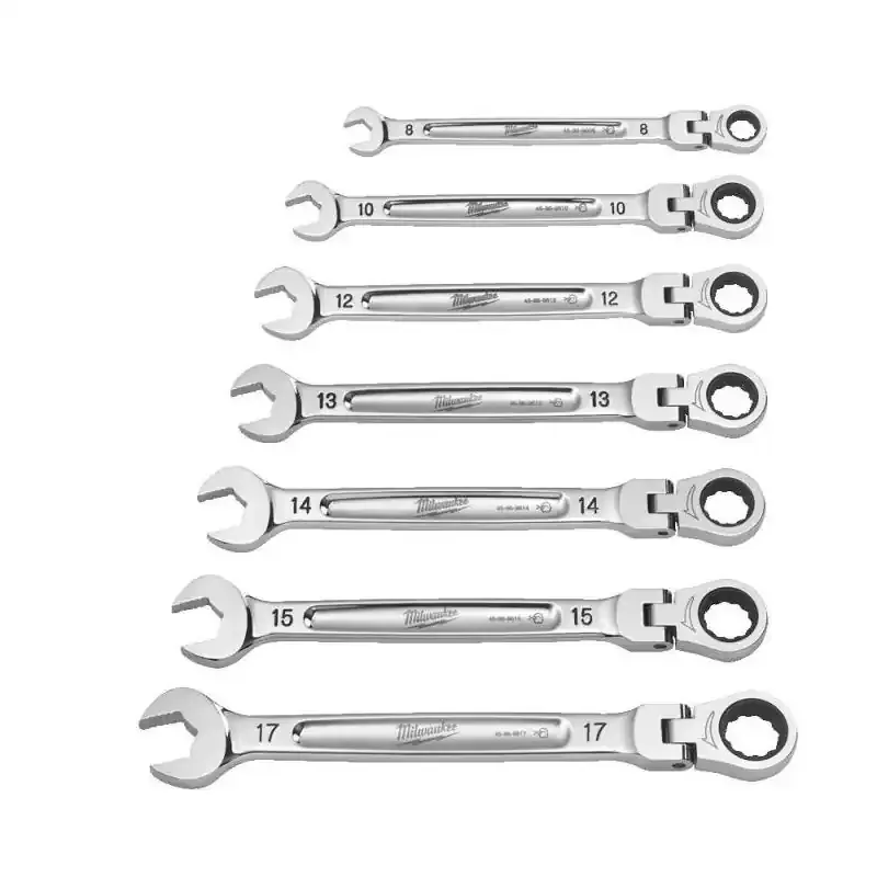 Zestaw kluczy płasko-oczkowych Milwaukee MAXBITE™ (7 szt.) z ruchomą główką grzechotki 180°. Zakres: 8 - 17 mm. Mechanizm 144 zęby, skok 2,5°. Wykonane z chromowanej stali stopowej, dostarczane w praktycznym etui.